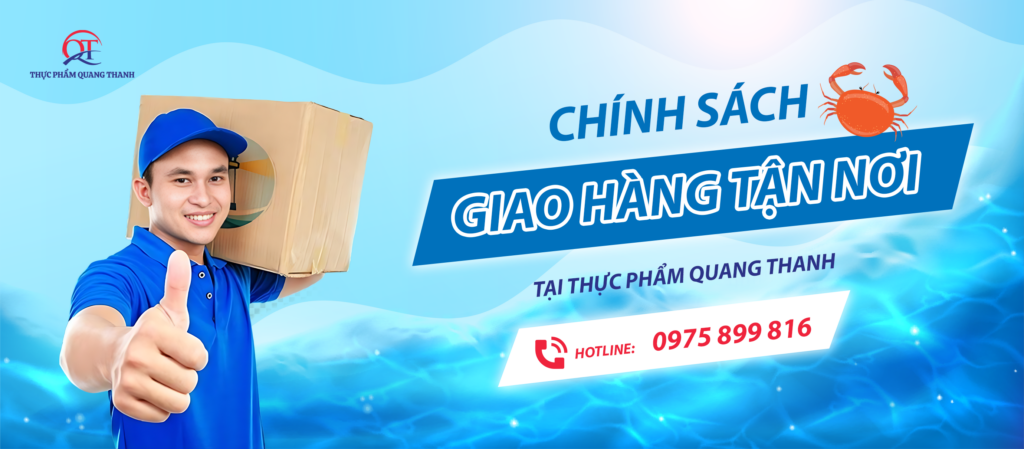 Thực phẩm Quang Thanh cung cấp chính sách giao hàng tận nơi theo yêu cầu. Chính sách vận chuyển đem đến sự tiện ích cho quá trình mua hải sản tươi sống, thỏa mãn các tiêu chí: tiết kiệm thời gian, công sức; bảo quản đúng kỹ thuật nhất… Đem đến cho khách hàng những bữa cơm ngon mà không mất quá nhiều thời gian mua sắm.